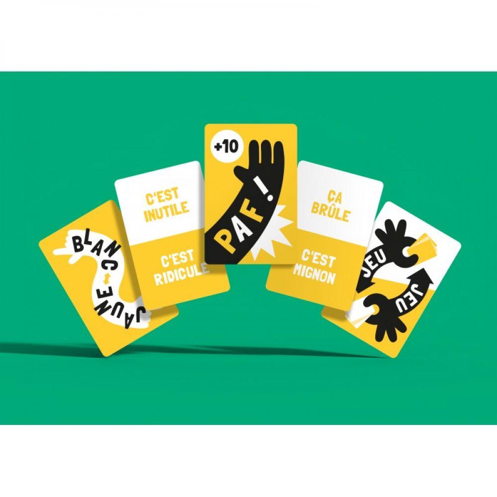 Le but : trouver un point commun (personne, truc, chose ou machin) qui fonctionne avec les 2 définitions ! Et le plus rapide remporte les cartes posées.