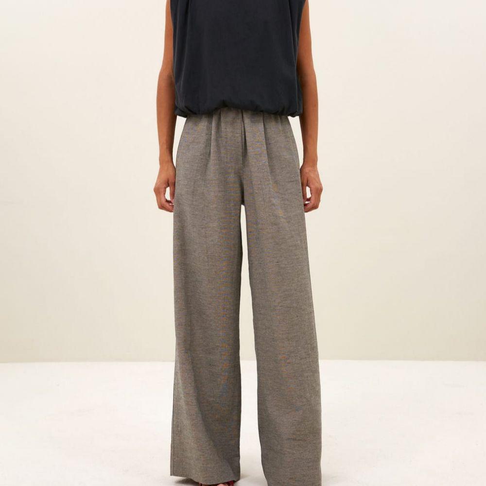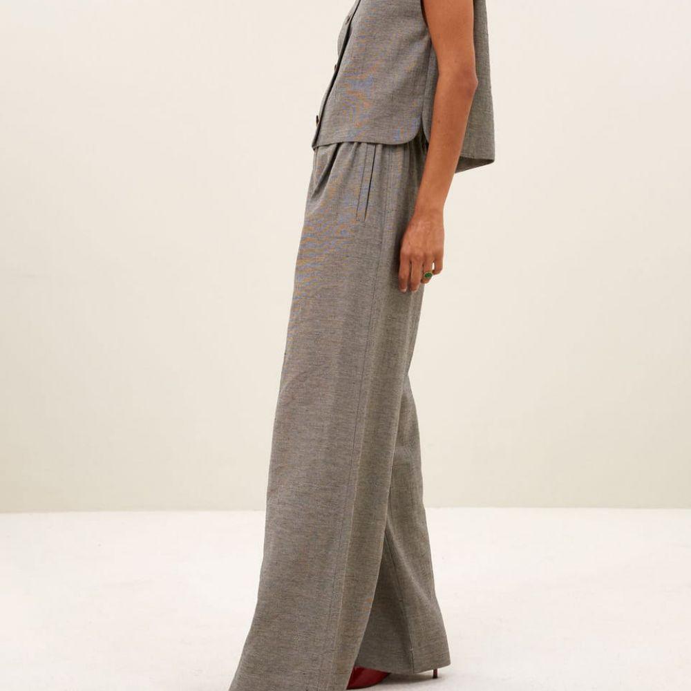 Le pantalon benji combine une coupe décontractée avec une taille haute pour un confort optimal. Sa coupe ample offre un look détendu, parfait pour tous les jours. Avec des poches latérales pratiques et une longueur de pantalon élégante et longue, ce pantalon est un ajout polyvalent à votre garde-robe. Idéal pour ceux qui veulent allier confort et style.