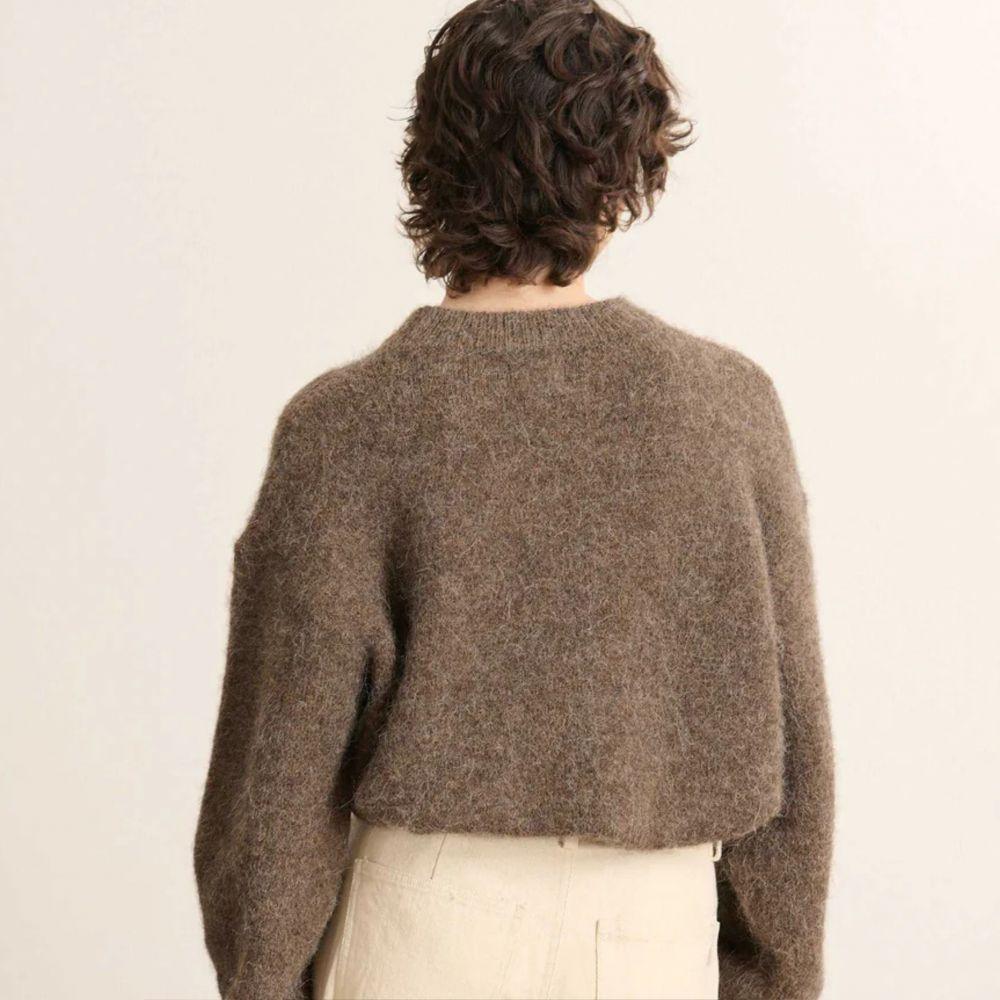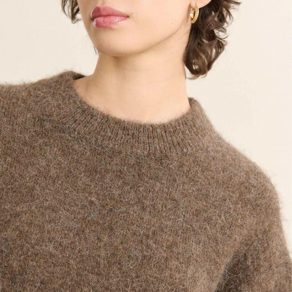 Ce pull col rond de la marque Garance Paris se distingue par sa douceur luxueuse et sa coupe ample, légèrement cintrée à la taille. Confectionné dans un mélange haut de gamme d’alpaga et de nylon, il offre une chaleur légère et réconfortante, tout en arborant des teintes naturelles élégantes.