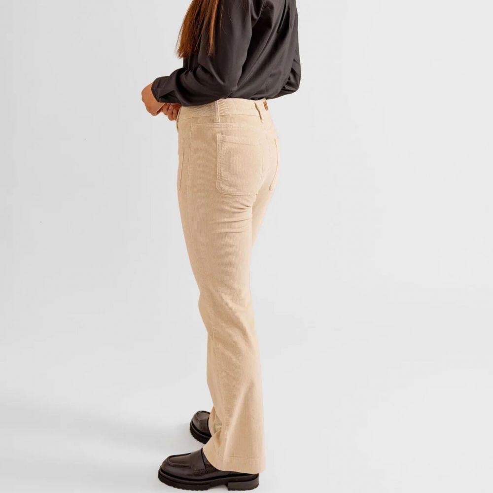 Pantalon velours bootcut beige taille mi-haute.